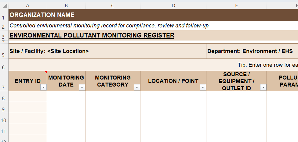 This Excel template supports better recordkeeping. At the same time, it improves visibility of environmental performance. For example, users can track recurring deviations, identify high-risk sources, and maintain evidence for inspections. Similarly, it helps prepare for compliance reviews under pollution control requirements, customer audits, and internal system audits. Since the format is structured, it also reduces the risk of missing important data fields.