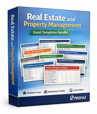 A professional bundle of 8 Excel templates for real estate and property management, including handover, snagging, tenant onboarding, maintenance, audits, housekeeping, lease summary, and visitor tracking. Ideal for landlords, property managers, builders, facility teams, and consultants.